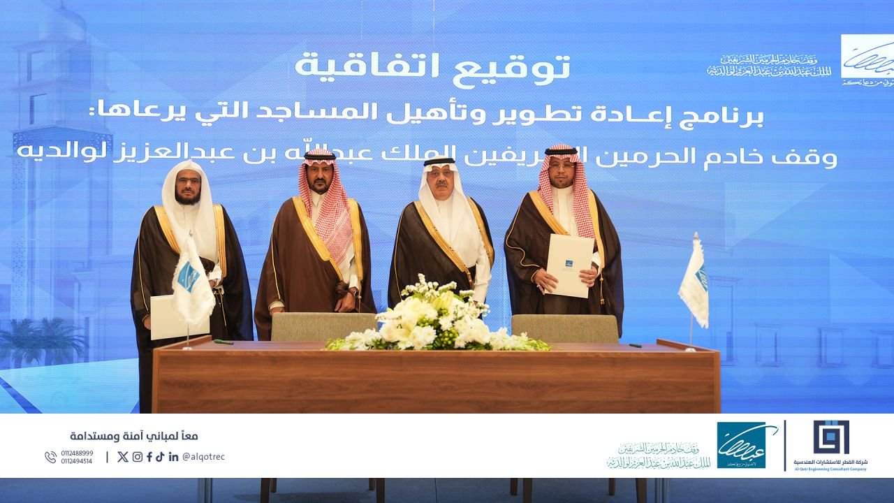 ويمتد تنفيذ المشروع لمدة (12) شهرًا، ويتضمن أعمال تطوير شاملة تشمل التأهيل والتشطيبات ورفع كفاءة البنية التحتية والخدمات، بما يعزز جاهزية المساجد واستدامتها على المدى الطويل، ويرسخ مفهوم الجودة في مشاريع بيوت الله.
