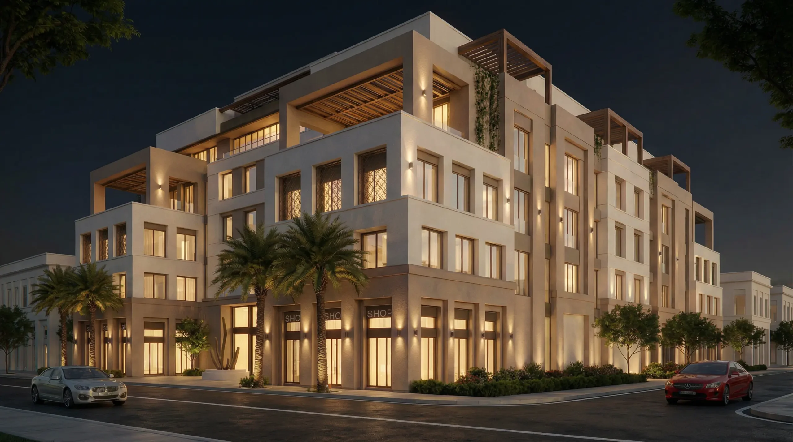 يتكون المشروع من محال تجارية ومكاتب إدارية بمساحات مختلفة، مع بدروم كامل يغطي كامل مساحة الأرض. ويقع المشروع في الرياض على أحد الشوارع الرئيسية في المدينة.
