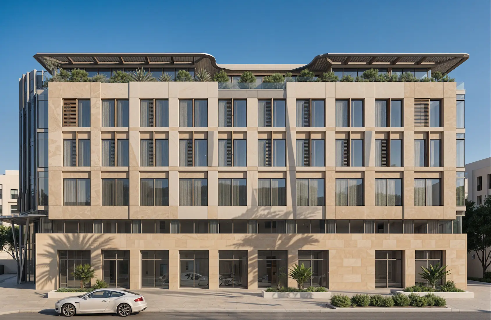 يتكون الفندق من بدروم ودور أرضي وأربعة أدوار علوية. ركز المشروع على تصميم فندق في شرق الرياض، وتطوير مفاهيم تصميمية تستوفي اللوائح البلدية والسياحية، وإعداد واعتماد جميع المخططات التصميمية، والحصول على التراخيص، وتسليم المخططات التنفيذية النهائية للعميل.