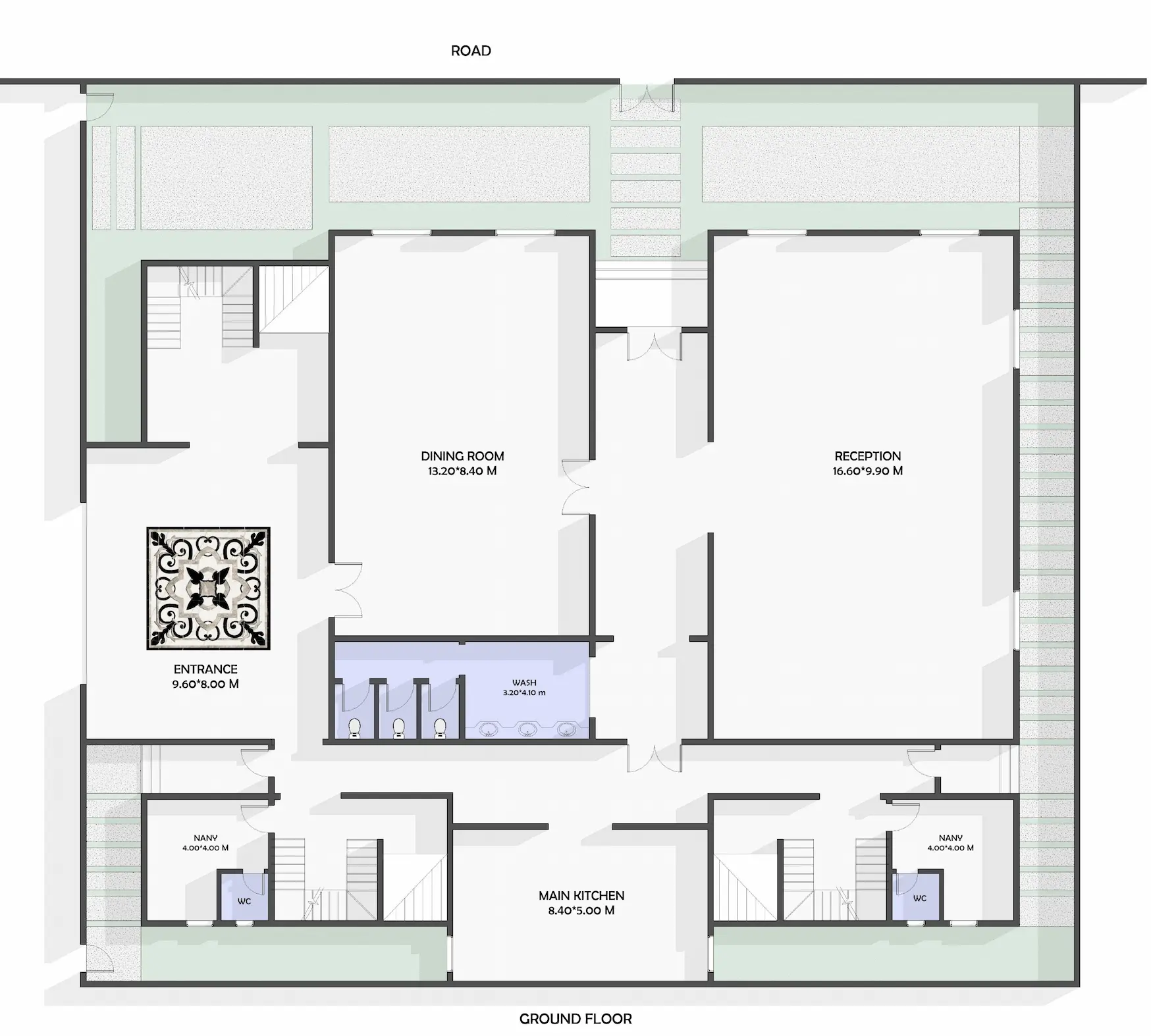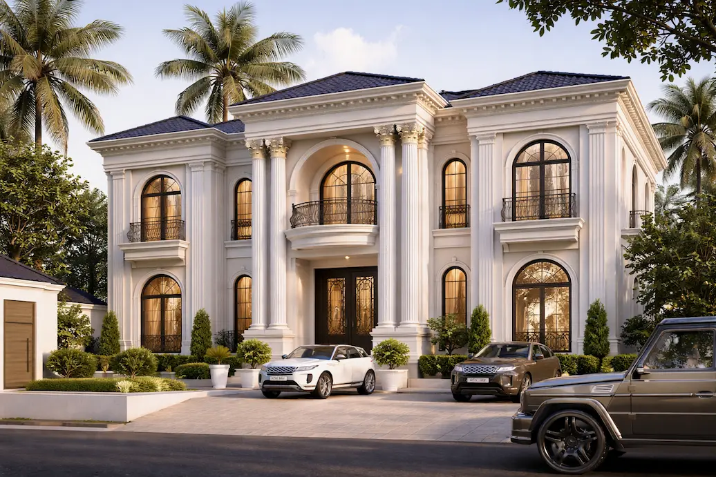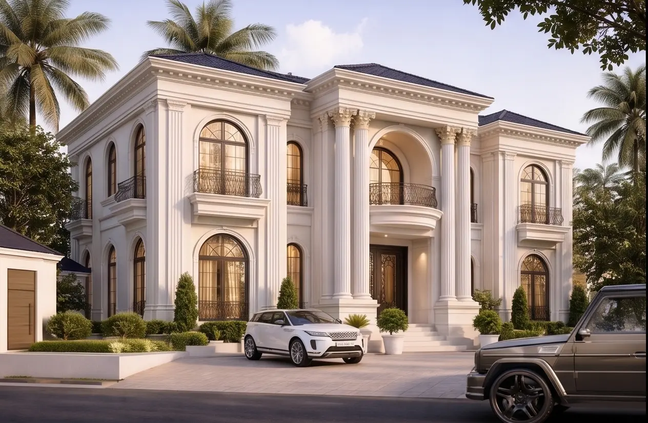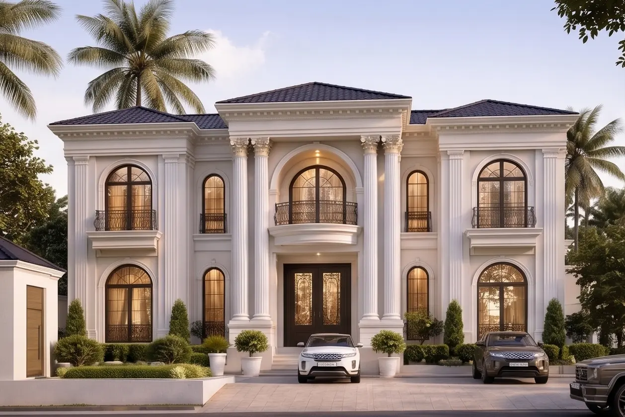 تصميم ثلاث فلل سكنية متلاصقة ضمن تطوير متكامل يضم قائمًا بمساحة 2445 متر مربع، مع ضمان توافق عناصر الواجهات الجديدة مع الهوية المعمارية للقصر القائم والالتزام باشتراطات بلدية الرياض.